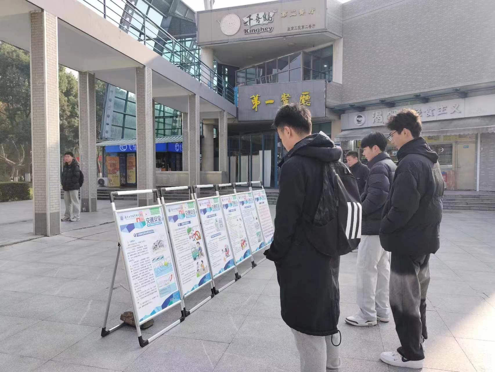 11月28日至12月2日,组织开展了交通安全知识展宣传活动。对常见的交通安全问题进行了展示和安全教育,并对学校面临的交通环境、遵守交通规则的重要性、交通违规案例及危害、交通违规事故后如何处理等几个方面进行重点宣传。此次广场宣传吸引了众多同学驻足观看,让参与师生学到了交通安全知识,提升了遵守交通安全法规的自觉性。