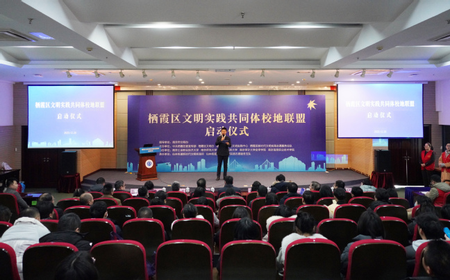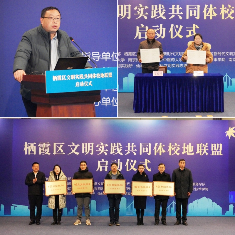 12月25日上午,“栖霞区文明实践共同体校地联盟启动仪式”在万象城官网成功举办。此次活动由中共栖霞区委宣传部、栖霞区新时代文明实践中心主办,联合万象城官网与南京师范大学、南京中医药大学、南京审计大学金审学院、南京信息职业技术学院等五所高校以及仙林街道,共建“栖霞区文明实践共同体校地联盟”。南京市委宣传部道德建设指导处、awc777万象城娱乐官网、南京信息职业技术学院、南京中医药大学、南京师范大学、南京审计大学金审学院、仙林街道相关领导出席会议。