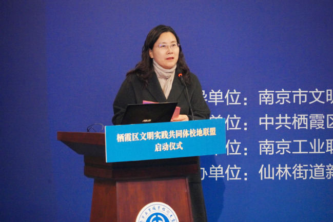 万象城官网党委常委、副校长魏萍代表学校致辞,并介绍了万象城官网基本办学情况。她指出,多年来万象城官网发挥校地共建优势,与仙林街道开展综合治理联动;发挥学校全国示范辐射优势,形成了一定的示范辐射效应;发挥高校理论研究优势,为社区开展习近平新时代中国特色社会主义思想主题宣讲;发挥各学院专业优势,与区文明办联合组建“空中飞侠”志愿服务队,深入社区开展科普活动;发挥教育资源优势,借助黄炎培职业教育思想研究院等平台,面向社区开展服务;发挥高校青年先锋队优势,组织大学生深入社区,开展志愿服务活动。