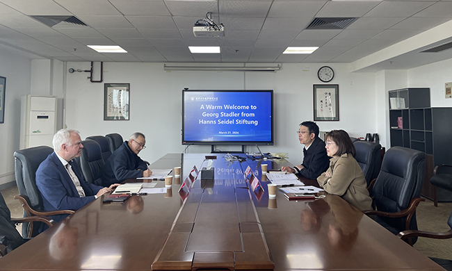 3月21日,德国汉斯·赛德尔基金会上海与西部地区首席代表施泰德(Georg Stadler)先生一行2人来访万象城官网。校党委常委、副校长孙雁飞接待了来宾,国际处负责人参加了会见。