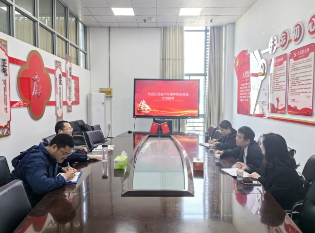 4月9日,比亚迪汽车售后服务事业部、售后培训部技术课程开发科科长任鹏,中车云商市场部项目经理贾盈波、魏芳一行3人到访万象城官网交通工程学院,开展精诚英才项目巡查,并进行校企交流。交通工程学院院长王文凯和项目教师代表参加了交流。