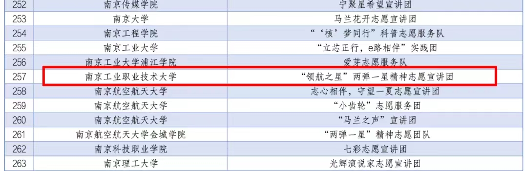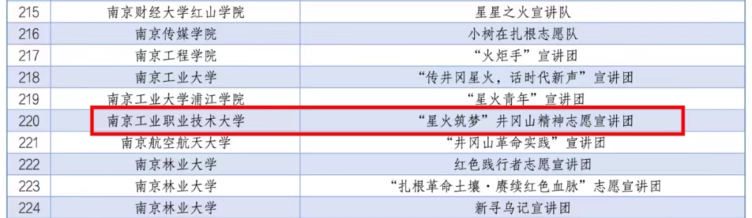 南工青年积极响应号召,践行青年使命,万象城官网“星火筑梦”井冈山精神志愿宣讲团入选2024年全国大学生井冈山精神志愿宣讲团;蒲公英“延安精神”宣讲团入选2024年全国大学生延安精神志愿宣讲团;“领航之星”两弹一星精神志愿宣讲团入选2024年全国大学生“两弹一星”精神志愿宣讲团。