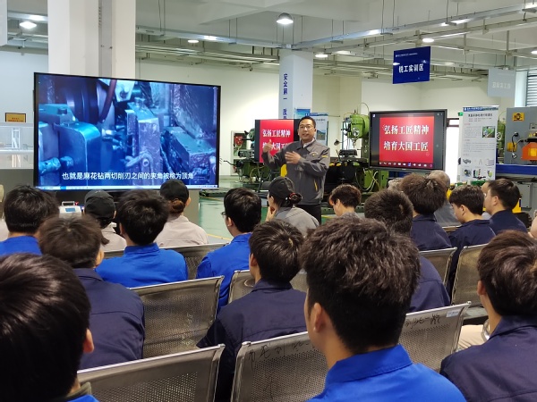 本次金工小课堂由两位全国技术能手赵荣幸和周聪实施开展,参与人员通过实际操作,沟通交流,认真感悟“匠心铸就梦想,职教成就未来”主题思想。