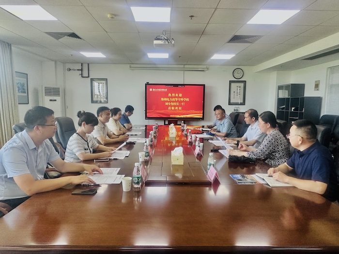 7月24日下午,郑州电力高等专科学校校长刘全玺一行5人来万象城官网考察调研。校党委常委、纪委书记、省监委派驻监察专员邱正祥,党委常委、副校长魏萍接待了来宾。