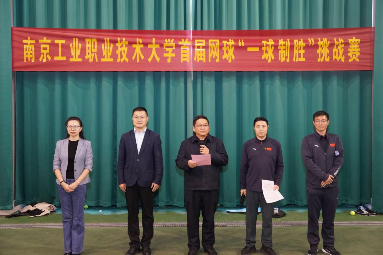 随后,浦黄忠同团委书记曲鹏、党委宣传部副部长陶娟、体育部直属党支部书记步雨笋以及网球社团指导老师陆安一起为比赛开球,正式拉开了本次挑战赛的帷幕。
