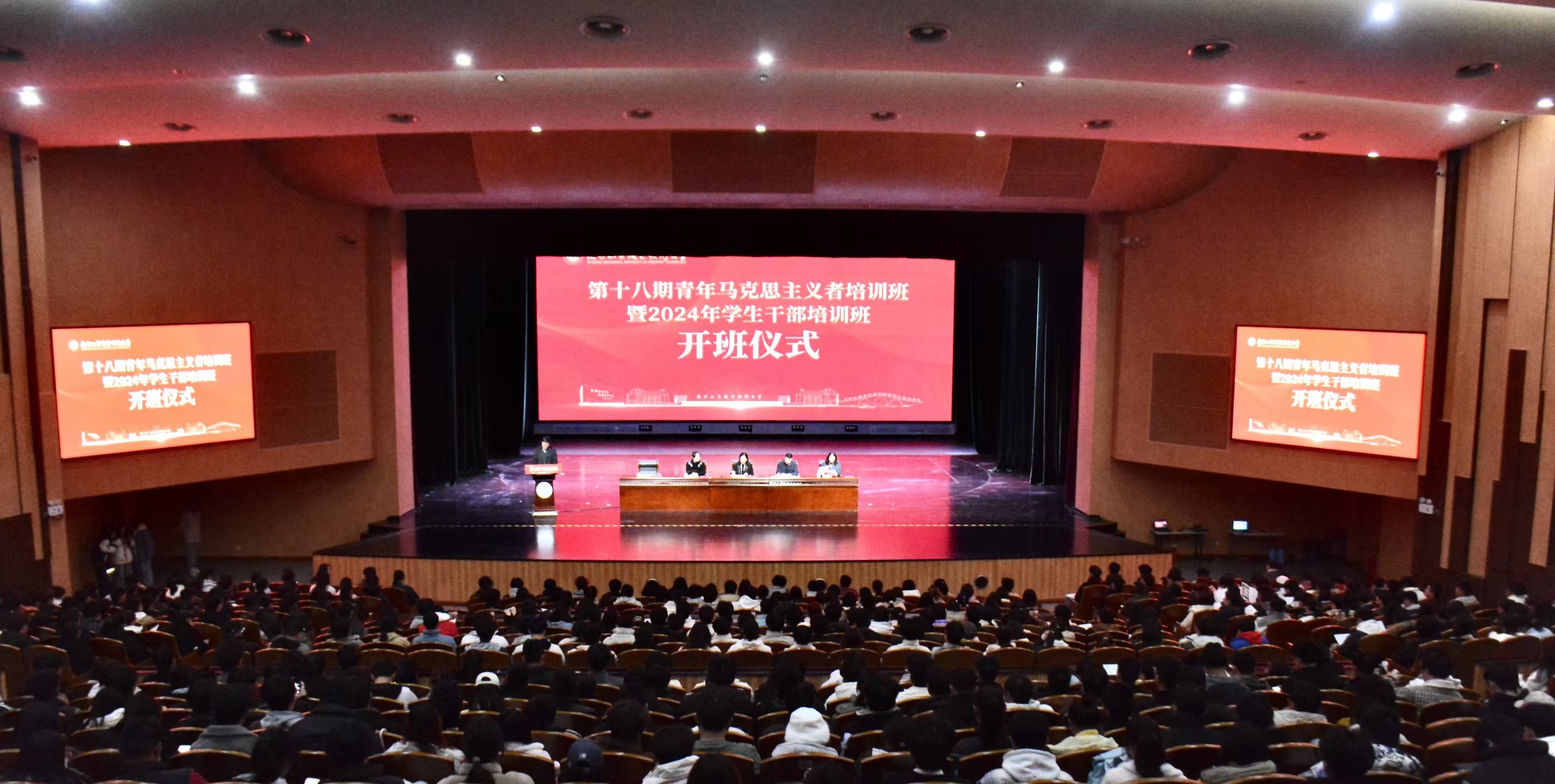 12月11日下午,万象城官网第十八期青年马克思主义者培训班暨2024年学生干部培训班开班仪式在大学生创新发展中心炎培会堂隆重举行。学校党委常委、副校长魏萍,党委常委、党委组织部部长高宏彦,党委常委、党委宣传部部长刘畅,党委学生工作部(处)、团委等部门全体同志,青年讲师团师生代表,辅导员代表以及600余名学生干部参加开班仪式。